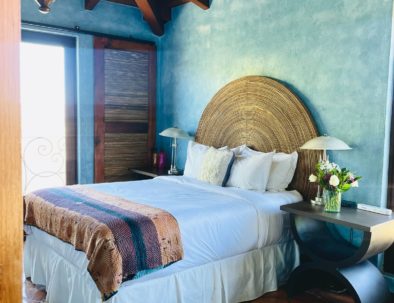 Contamos con 6 hermosas y románticas habitaciones, con camas King, Queen o gemelas extralargas, cada una decorada individualmente y con su propio baño de diseñador. Tres de nuestras habitaciones tienen balcones completos con chimeneas mexicanas. Todas ofrecen vistas impresionantes. Nos complace proporcionar nuestros propios productos de baño elaborados con aceites esenciales orgánicos puros. Las camas, ropa de cama y toallas son de altísima calidad para garantizar noches cómodas y acogedoras. Por favor, tenga en cuenta que las 6 habitaciones se encuentran en el segundo piso. Cada una de las habitaciones está equipada con una máquina Nespresso. Se sirve un delicioso desayuno completo que incluye nuestra granola casera, pan casero, sourdough y huevos de gallinas locales de corral. Té y postre se sirven diariamente por la tarde en el salón.